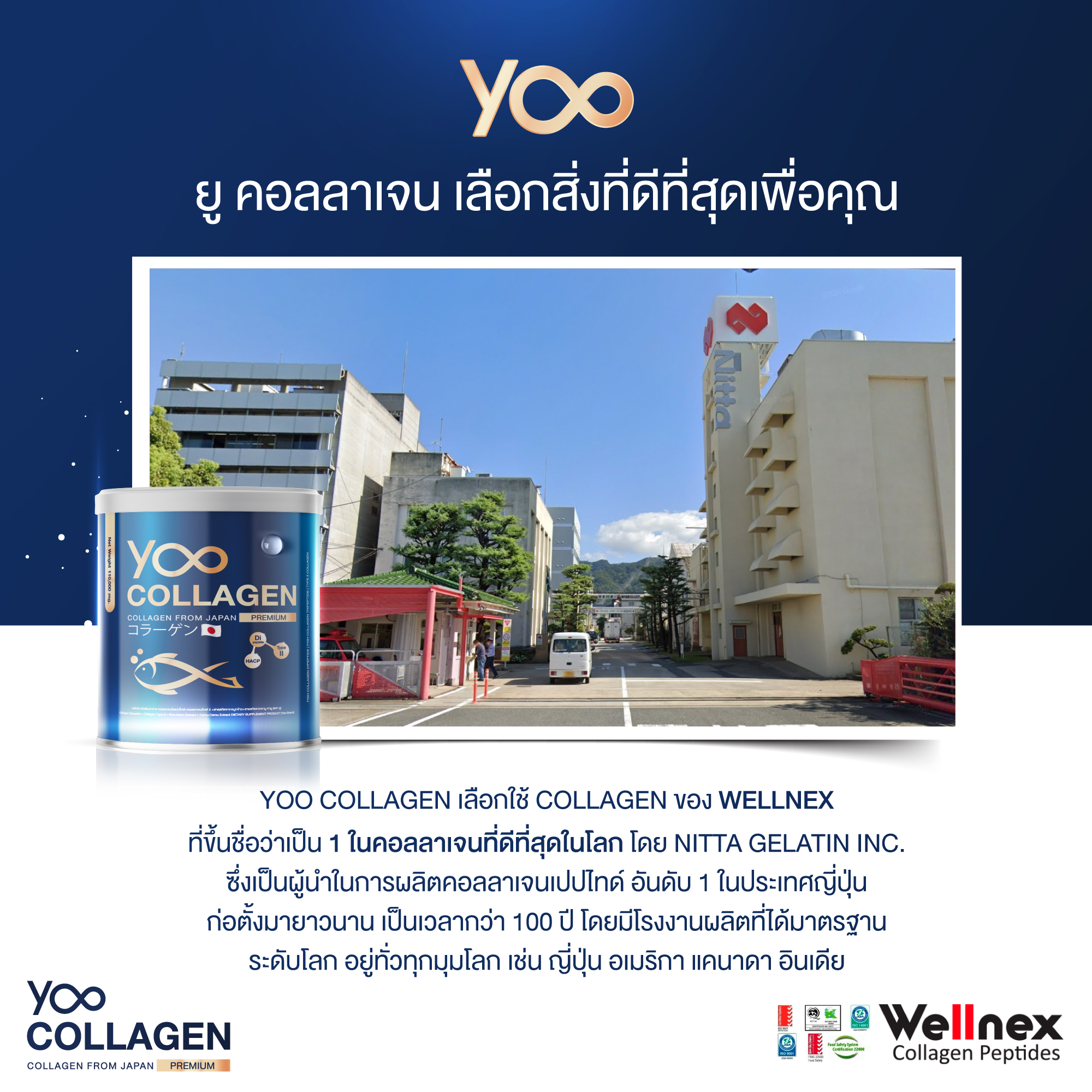นวัตกรรมของสารสกัดและแหล่งวัตถุดิบที่เลือกใช้ ล้วนมาจากแลปชั้นนำของโลก อย่าง Collagen ของ Wellnex